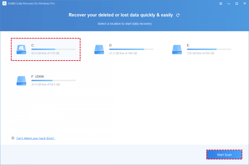 데이터 복구 업계의 벤치마크인 AOMEI에서 개발한 AOMEI MyRecover에는 고급 검색 알고리즘이 내장되어 있습니다. 빠른 스캔과 정밀 스캔의 결합된 스캔 방법은 누락 없이 데이터를 복구하는 데 도움이 됩니다.