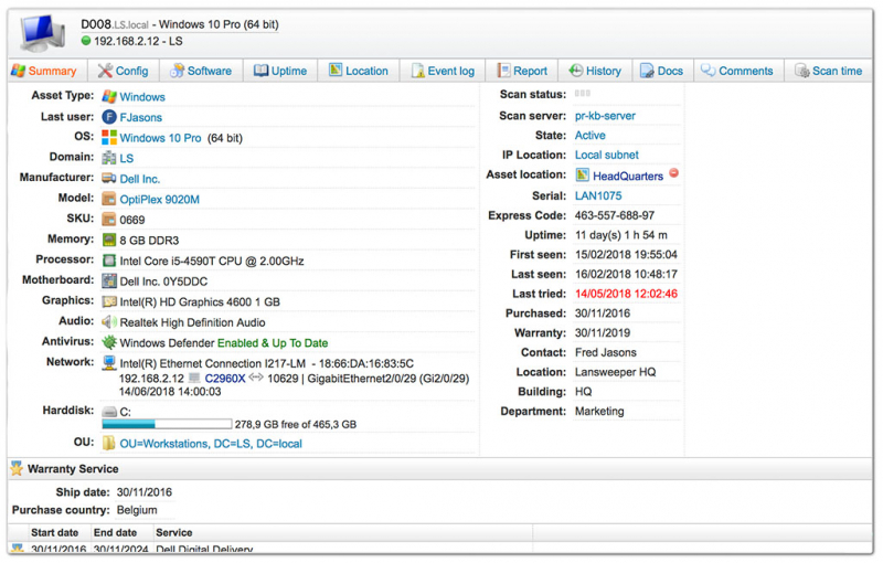 Windows XP, Windows Vista, Windows 7, Windows 8, Windows 10용 LanSweeper 10 다운로드: 모든 컴퓨터 및 장치를 스캔하여 표시하는 자동화된 네트워크 감지 및 자산 관리 도구