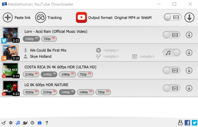 MediaHuman YouTube Downloader은 새 영화의 즐겨찾기 비디오 또는 트레일러를 찾은 사람들을 위한 편리한 애플리케이션이며 오프라인으로 보기 위해 컴퓨터에 보관하려고 합니다. 또는 비디오 레슨/튜토리얼을 다운로드해야 한다. 비디오 다운로더는 이러한 종류의 작업에 이상적인 솔루션입니다.