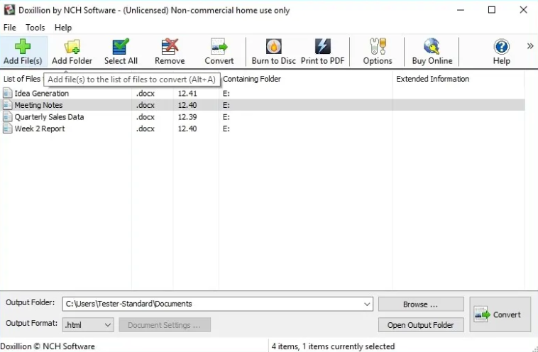 NCH Doxillion Plus은 다중 형식 변환기이며 DOC, DOCX, PDF, WPS, Word, HTML및 기타 파일 유형을 변환하는 가장 빠른 방법입니다. 다운로드 수 분 내에 텍스트 문서를 변환합니다. 빠르고 쉽게 문서 변환 프로세스를 한 번 클릭하십시오. 수천 개의 파일을 변환하는 일괄처리 파일 변환기.