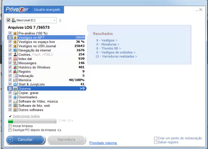 PrivaZer은 보안 삭제 방법을 사용하여 모든 추적을 영구적으로 초기화할 수 있으며 디스크 여유 공간을 0으로 재설정하여 이전 삭제 조작의 모든 추적을 제거할 수 있습니다. 초기 스캔 및 정리 프로세스는 디스크 크기 및 찾은 추적 수에 따라 시간이 조금 소요될 수 있습니다 (20-30분).