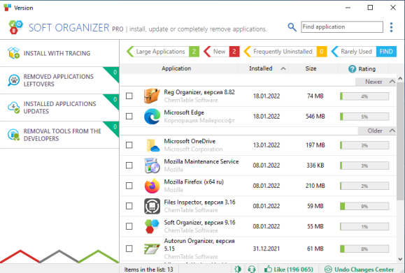 - 적절한 기능 선택에 힘입어 소프트 Organizer는 사용자가 실제로 필요로 하는 옵션만을 특징으로 합니다. 프로그램의 전반적인 기능은 경쟁 애플리케이션 제거 솔루션과 유사합니다.