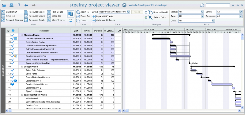 - Steelray Project Viewer은 최대 프로젝트 스케줄 (예: 항공우주/국방, 건설) 을 사용하는 산업의 고객이 사용합니다.