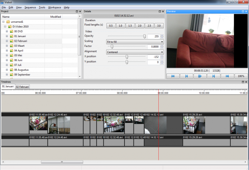 Vidiot 은 홈 비디오 편집을 대상으로 하는 비선형 비디오 편집기입니다. 컴포지팅 (가리비/회전/위치 지정), 크로핑, 속도 변경, 전이 및 제목 추가, 트리밍, 키 프레임 등을 지원합니다.