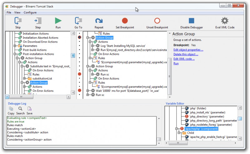 - 포함된 디버거를 사용하면 설치 프로그램을 개발하여 문제점을 해결할 수 있도록 설치 프로그램을 테스트할 수 있습니다.